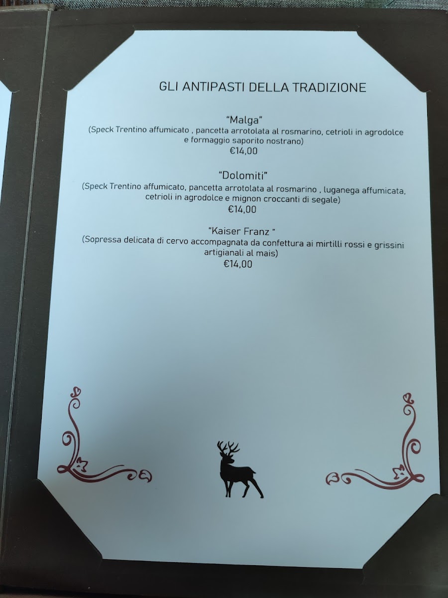 The menu showcases the rich traditions of Trentino, with a standout dish being the delightful "Principessa Sissi," celebrated by customers for its exquisite flavors. Guests rave about the warm, attentive service and the stunning ambiance, enhanced by the rustic elegance of its wooden interiors. The path to Dismoni may be steep, but the culinary journey and captivating scenery make every twist and turn worthwhile. For those seeking local cuisine served with heartfelt hospitality, Dismoni is an essential stop in the Dolomites.